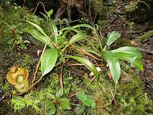The lower pitchers of this species are often embedded in thick Sphagnum moss, allowing them to trap small terrestrial animals such as snails.