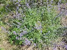 Nepeta grandiflora is a species of flowering plant in the mint family Lamiaceae, native to the Caucasus. Growing to 75 cm (30 in) tall by 30 cm (12 in), it is a clump-forming, erect deciduous herbaceous perennial with aromatic, slightly hairy, grey-green leaves, and spikes of purple/blue flowers in early summer.[3] Species of Nepeta are called catnip or catmint, with reference to their reported effect on some domestic cats. The plants seem to induce a euphoria in the animals, causing them to roll in the foliage and exhibit signs of intoxication.