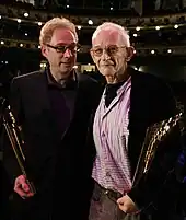 Playwright Gert Jonke (r.) and actor André Pohl (l.) at the Nestroy-Theaterpreis 2008 (Etablissement Ronacher, Vienna)