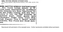 She is a well-known journalist with the Chicago Defender. She wrote on courts, crime, theater, and sports and advocated for African Americans, particularly African American women. Nettie Speedy was the 1st woman to become a trustee at Lane College in Tennessee.[8] According to "The Chicago Defender (National Edition) (1921–1967); November 12, 1932; page 4," Mrs. Speedy, who has earned notoriety in newspaper circles as a member of the Chicago Defender staff, became the first woman to serve on the board of trustees at Lane College.[9]
