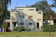 The Siedlung Neu-Jerusalem (New Jerusalem settlement) is a residential complex along federal route No. 5, here named Heerstraße, in the locality of Staaken, part of Berlin's Borough of Spandau. The Deutsche Gartenstadt Gesellschaft commissioned Erwin Gutkind (in German), who designed between 1923 and 1924 following the style of New Objectivity the plans for the complex, which was completed until 1925.