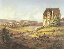 Neuenstadt viewed from the north east with Gosheim castle in the foreground, Albert Wagner, 1853