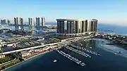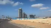 New Alamein (Arabic: العلمين الجديدة), is a new city in northwest Egypt inaugurated by Egyptian President Abdel Fattah el-Sisi on 1 March 2018.[1][2] New Alamein lies on the Mediterranean Sea, approximately 85 km west of Borg El Arab International Airport. Still under construction, New Alamein was conceived by the Egyptian government as a center for tourism,[3] education,[4] and government. The city has its own presidential palace and ministry building.[5] Construction is ongoing at New Alamein for three universities, fifteen skyscrapers and high rise towers, and 10,000 hotel rooms.[6][7][8] Work has begun on Phase II of the New Alamein megaproject, which includes ten additional coastal towers.[9]