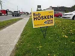 The New Blue Party is a right-wing, social conservative party that has been described as being to the right of the Progressive Conservative Party of Ontario from which it split.[3][2] The party has publicly opposed all measures taken against COVID-19; at least one of the party's candidates for the 2022 Ontario general election took part in the Canada convoy protest.[20][21]