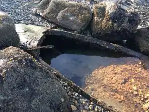 New Brighton Park is one of the many locations in Vancouver, Burnaby, and New Westminster, that sewage outflow occurs.[5] Vancouver's current sewage system was built in the 1960s and is organized so that sewage output is mixed with rainwater collecting systems.[6] This is known as a combined sewer system. The reason for implementing such a system is that it is both cheaper to build and easier to maintain.[6] Under normal circumstances this system is not an issue. However, when storms produce large amounts of rainwater the system overflows to nearby waterways.[7] In most cases the piping is under water so that the public cannot see that sewage leaving, however, at New Brighton Park the piping is sometimes exposed at low tide.