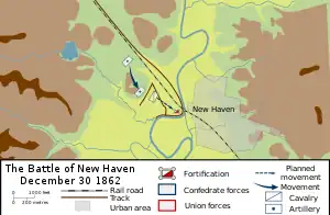 The New Haven Battlefield is the area of American Civil War military engagements at the intersection of the Rolling Fork and the former Louisville and Nashville Railroad line between Knoxville and New Haven, Kentucky. The geographic area includes the James Howell Farm ("New Haven Battlefield Site" on the National Register of Historic Places) and additional combat areas of December 30, 1862.