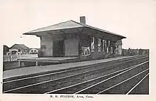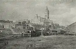 ![]() A train at Holyoke, Massachusetts along the New Haven and Northampton main line in the 1890s. This portion of the line is now operated by the Pioneer Valley Railroad. | |