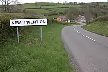 New Invention is a hamlet in Shropshire, England on the A488 between Clun and Knighton.[1] It comprises little more than four houses around a cross-roads and a neighbouring farm called The Weir, known in history as the Wear or Ware. Of the four houses, one was a blacksmith's shop, one a pub called the Stag's Head, and one a Methodist chapel built in 1874. It served as one of many local locations for the film Gone to Earth (released 1950), directed by Michael Powell and Emeric Pressburger.[2] The River Redlake passes through. The population as of the 2011 census is listed under Clun.