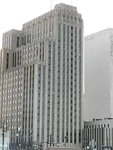 The New Jersey Bell Headquarters Building is located in Newark, Essex County, New Jersey, United States. The building was built in 1929 by the New Jersey Bell Telephone Company and was added to the National Register of Historic Places on September 21, 2005. The art deco building was designed by Ralph Thomas Walker of the architectural firm Voorhees, Gmelin, and Walker. The buff brick and sandstone façade is decorated with pilasters created by sculptor Edward McCartan. Since the building's opening, soft orange lights have bathed its upper floors at night. The building is 20 stories and 275 ft (84 m) tall.[3] The building later became headquarters for Verizon New Jersey, Inc.[4][5][6]