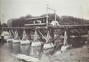 ![]() A NL&EL car crosses the Smith Cove trestle in 1906 | |
