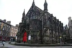 The church ministered in an area of significant poverty, founding missions, a Sabbath school, and a day school.[7] In 1852, the congregation assumed responsibility for a Free Church mission in the Cowgate, which, from the following year, met at Mary's Chapel. Under Brown, the mission proved a success and was elevated to a full charge in 1859.[8] The church's district (equivalent to a parish) was thereafter moved to cover the Bristo and, in 1880, the congregation purchased a former dance hall on Marshall Street to serve as mission premises.[3][9]