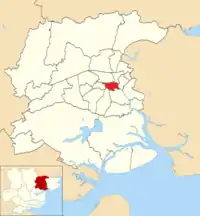 New Town ward (in red) displayed within Colchester Borough
