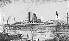 New York, a wooden-hulled passenger-cargo sidewheel steamboat, was built in Manhattan, New York, in 1836 by Lawrence & Sneden for the New Haven Steamboat Company, which planned to operate the vessel between New York City and New Haven, Connecticut. She was 212 feet (65 m) in length, with a beam of 23 feet (7.0 m), hold depth of 11 feet (3.4 m) and loaded draft of 5 feet (1.5 m).[1][2][lower-alpha 1] With a gross tonnage of 524, she was at the time considerably larger than any steamboat previously built for service between New Haven and New York,[4] and was one of the largest steamers on Long Island Sound.[lower-alpha 2] She was considered a fine vessel for her day.[7]