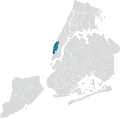 District 3 covers the Lower Manhattan neighborhoods of Chelsea, the West Village, Hell's Kitchen, Hudson Square, the Garment District, Flatiron, and parts of Greenwich Village, Times Square, and the Upper West Side.[4]