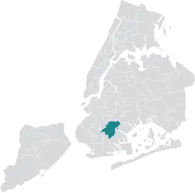 The district overlaps with Brooklyn Community Boards 12, 14, 15, 17, and 18, and with New York's 8th and 9th congressional districts. It also overlaps with the 17th, 19th, 21st, and 22nd districts of the New York State Senate, and with the 41st, 42nd, 44th, 48th, 58th, and 59th districts of the New York State Assembly.[5]