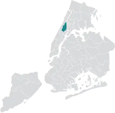 The district overlaps with Manhattan Community Boards 9, 10, and 11, and is contained entirely within New York's 13th congressional district. It also overlaps with the 29th, 30th, and 31st districts of the New York State Senate, and with the 68th, 69th, 70th, and 71st districts of the New York State Assembly.[5]