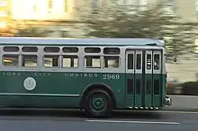 Following the end of World War II, the BOT resumed subway construction.[1][6][7][11][26][27] On February 23, 1947, the Board of Transportation assumed the bus routes of Isle Transportation in Staten Island. On March 30, 1947, the BOT took over the North Shore Bus Company in Queens. Both companies could not operate on the mandated five-cent fare and went bankrupt. This gave the city control of the majority of surface transit in Brooklyn, Queens, and Staten Island. It also created three distinct surface transit divisions: the Brooklyn Bus and Trolley Division, the Staten Island Bus Division, and the Queens Bus Division.[2][7][11][12][29][30][31][32][33][34] On September 24, 1948, the BOT took over the East Side Omnibus Corporation and Comprehensive Omnibus Corporation in Manhattan.[2][35] At this time, the BOT resumed motorizing trolley lines, and proceeded to construct new storage and repair facilities. It also purchased new buses, to either replace streetcars or the dilapidated buses inherited from private operators.[1][7][11]
