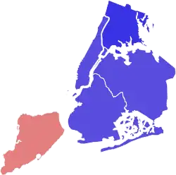 Primary elections were held on September 10, 2013. The Republican nominee was former Metropolitan Transportation Authority Chairman Joe Lhota. New York City Public Advocate Bill de Blasio was the Democratic nominee.[1] De Blasio was elected mayor with 73.15% of the vote, becoming the first Democrat to win a mayoral election in the city since 1989. This election ended the Republicans five-election winning streak. This election had the lowest turnout in a New York mayoral election since the participation of women in 1917, with a turnout of 13.4% of registered voters.