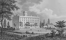 In 1829 it would move uptown to 49th Street and Madison Avenue.[2] In 1856, this location would be sold to Columbia College (now Columbia University) and served as the site of Columbia's Madison Avenue campus. After the 1857 move, it would move to Upper Manhattan to an area then known as Carmansville.[3] In 1892, the school was the first U.S. school of any kind to introduce a military curriculum. For half a century, tight formation drill was an everyday occurrence on the parade grounds.[4][5]