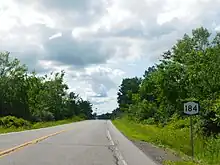 New York State Route 184 (NY 184) is a state highway in St. Lawrence County, New York, in the United States. The route is signed as east–west; however, it runs more in a northeast–southwest direction. It extends for 13.69 miles (22.03 km) between an intersection with NY 58 in the town of Macomb and a junction with NY 812 in the village of Heuvelton. The two-lane route passes through mostly rural areas of the county. NY 184 was assigned in the early 1930s to most of its current alignment; however, it initially veered southeastward in the town of De Peyster to serve the hamlet of De Peyster. The route was realigned to bypass the community shortly afterward.