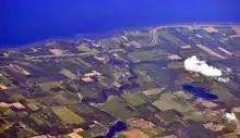 An aerial view of the western end of the parkway and Oak Orchard Creek