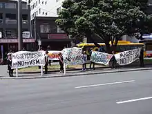 NZUSA campaigned against the introduction of voluntary student membership (VSM), arguing that students did support compulsory membership of students' associations. NZUSA proposed a policy compromise, suggesting a "KiwiSaver style" opt-out arrangement where students would be members unless they explicitly said they did not want to be.[1] Although NZUSA had campaigned against VSM for fifteen years, in 2012 all students' associations were required to be voluntary.[2]