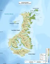 New Zealand Subantarctic Islands, 360 kilometres (220 mi) of Stewart Island / Rakiura 50°42′S 166°05′E / 50.700°S 166.083°E / -50.700; 166.083 (Auckland Islands) 625.64 square kilometres (241.56 sq mi) Mount Dick
