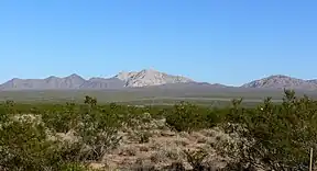 The Newberry Mountains in Nevada are located east of Cal-Nev-Ari and the United States Coast Guard LORAN station in the southern part of the state.[3] The range is Nevada's southernmost named mountain range, and lies to the northwest of the town of Laughlin and west of Lake Mohave. The Newberry Mountains connect with the Eldorado Mountains and The Highland Mountains.[4] The highest point in the range is Spirit Mountain at 5,642 feet (1,720 m).