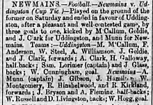 - ↑ The players being G. Williamson, A. Muir, and R. Colthart; "Newmains". Wishaw Press: 2. 26 May 1883.
