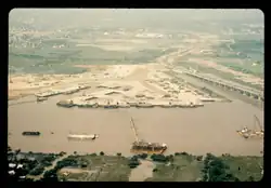 With the increased movement of U.S. troops into the Saigon area to support the Vietnam War, the deep-draft facilities there proved completely inadequate. However, a plan was already underway to construct a new port on the Saigon River upstream from the city. This site, called Newport, was in a sparsely populated area adjacent to Highway 1 and the bridge connecting Saigon with the newly developing Long Binh Post some 20 miles (32 km) northeast of Saigon. This massive project financed by the Army was constructed by RMK-BRJ.[1]:59