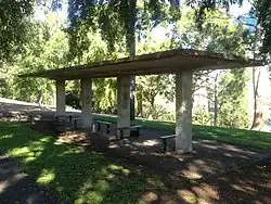 Of the 37 reusable shelters listed as being of the park type only 17 survive: one at Hefferan Park in Annerley; two at Albert Park; two at Wickham Park; one in Buranda Playground in Woolloongabba; two in Raymond Park in Kangaroo Point; and one each at Kelvin Grove, Morningside, Nundah, Stones Corner, and Windsor. Four other shelters stand on East Street and Wickham Street in Fortitude Valley. Most are used as simple park shelters, as intended, but the shelter at Nundah has been modified as a toilet block, and the shelter at Kelvin Grove is used as a bus shelter (as distinct from those shelters in the next category, which were specifically designed as "bus" type shelters). About half of the surviving park shelters had concrete blast walls, while half used brick.[1]