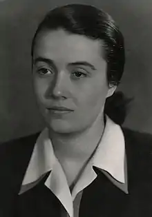 Nexhmije Hoxha was born Nexhmije Xhuglini in Bitola, in present-day North Macedonia.[2] Later moving with her parents to the Albanian capital, Tirana, she studied at the Queen Mother Pedagogical Institute.[2] In November 1941, while still training to be a schoolteacher, she joined the newly founded Albanian Communist Party and a year later was elected to the General Council of the Albanian National Liberation Movement.