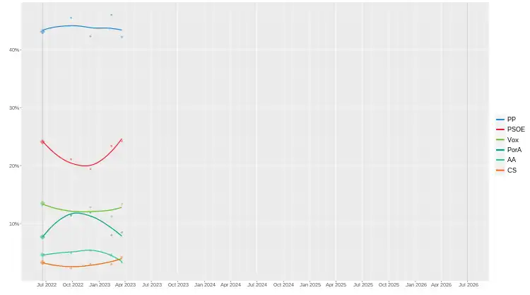 | 2022 regional election | 19 Jun 2022 | — | 24.9 | 13.9 | 7.8 | 4.4 | 2.6 | 1.9 | – | — | 41.6 | 11.0 |