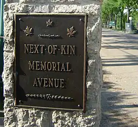 - ↑ Next of Kin Memorial Avenue. Canadian Register of Historic Places. Retrieved 19 August 2012.