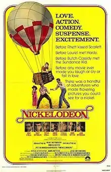Nickelodeon is a 1976 American comedy film directed by Peter Bogdanovich, and stars Ryan O'Neal, Burt Reynolds and Tatum O'Neal. According to Bogdanovich, the film was based on true stories told to him by silent film directors Allan Dwan and Raoul Walsh. It was entered into the 27th Berlin International Film Festival.[2]