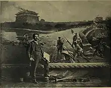 When he returned to the Russian Empire, Kravchenko performed a series of portraits of prominent contemporary figures from nature. When Kravchenko got close with officer environment of the guard regiments in St. Petersburg, he got an access to encampments and maneuvers and made a series of drawings, depicting the life and types of soldiers of the Leib Guard of Pavlovsky Regiment, which was able to demonstrate to Emperor Nicholas II in 1900 at a regimental holiday. [1] At the beginning of 1902, Kravchenko went to Manchuria and China with the aim to collect material to illustrate the campaign of Russian troops in China in 1900-1901. He visited Mukden, Liaoyang, Port Arthur, Takuya, Tianjin, Beijing, Tunjou, Yingkou and some places of Great Wall of China.