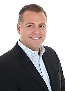 Tétrault sought election to the National Assembly of Quebec in the 1994 Quebec provincial election as a Parti Québécois (PQ) candidate in the extremely safe Liberal seat of Robert-Baldwin in west-end Montreal. The youngest candidate in the province at nineteen years of age, he was a CEGEP student during the election.[1] Although it was generally recognized that he had no chance of winning, Tétrault's campaign received a fair amount of media attention.[2] Profiled by the Montreal Gazette in August 1994, he described himself as "the kind of nationalist who is open to discussion."[3] He finished a distant second against Liberal Pierre Marsan on election day.