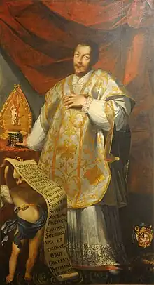 Many of his biographical details are not recorded.[1] He was either trained by or a disciple of the Bolognese Carlo Cignani. Among his works are a Madonna Addolorata, once found in the Cathedral of Trento, the Gonfaloncini of the Mysteries of the same church, the painting of St. Catherine of Bologna held in the Reformed Fathers of Trent in San Bernardino, and that of Maria and San Felice, once found in the church of the Capuchin Fathers in the same city.[2] Other works are a St John of Sahagún saves a child fallen in a well now in the church of Terres, but originally in the Augustinian church of San Marco in Trento (1696-1700). He painted an altarpiece commissioned by it:Carlo Ferdinando Lodron for the Cathedral, and they also commissioned portraits of priest from the family for the Sacristy of the Pieve of Villa Lagarina. He also painted a St Valentine (before 1708) for the church of Dasindo(before 1708) and a Madonna and patron saints of Trento.[3]