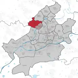 Location of Niederursel (red) and the Ortsbezirk Nord-West (light red) within Frankfurt am Main