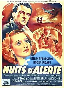 Night Warning (French title: Nuits d'alerte) is a 1946 French war drama film directed by Léon Mathot and starring Hélène Perdrière, Roger Pigaut and Pierre Dudan.[1] The film's sets were designed by the art director Roland Quignon.