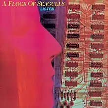 Listen is the second studio album by English new wave band A Flock of Seagulls, released on 29 April 1983 by Jive Records. It once again teamed the group with record producer Mike Howlett—who produced their self-titled debut album—except on "(It's Not Me) Talking", which was produced by Bill Nelson. The album includes the UK top-10 single "Wishing (If I Had a Photograph of You)". Other singles released from the album include "Nightmares" and "Transfer Affection". The face on the cover is that of the band's drummer, Ali Score.