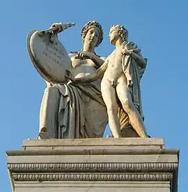 Nike Instructs the Boy in Heroic History (German: Nike lehrt den Knaben Heldensagen) is an outdoor sculpture by Emil Wolff, installed on Schlossbrücke in Berlin, Germany.[1]