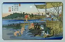Keisai Eisen's print of Kuragano-shuku, part of the series The Sixty-nine Stations of the Kiso Kaidō