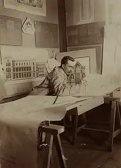 In 1896, he established the first private architectural company[3] (headquartered at Targovska Street), and in 1902 he became the first architect to be elected to the National Assembly of Bulgaria by joining the parliament as a deputy of his native Karlovo. Together with Yordan Milanov, he attended the 8th International Congress of Architects in Vienna in 1908. He worked actively as an architect until 1934. In 1937–1941, he was a leading member of the Capital Municipal Council and an advocate of Adolf Mussmann's 1938 city plan.[1][4]