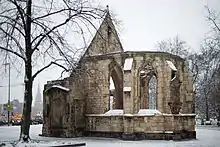 St. Nicholas' Chapel (German: Nikolaikapelle) is an architectural heritage monument (Baudenkmal) and the oldest building in Hanover, Germany.[1][2]: 8 First built as a chapel dedicated to Saint Nicholas between 1250 and 1284 and a choir dating to 1325,[3] it was damaged severely during the aerial bombings of Hanover during World War II.[1]: 13 In 1953 the then approximately 700-year-old chapel was largely torn down to make way for a road as part of a larger post-war city-wide strategy to accommodate cars, with the currently 699-year-old choir left standing as a monument.[4]: 287–289