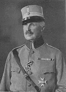 He was promoted to lieutenant colonel in 1917 and to colonel in 1918 and at the same time appointed commanding officer of Småland Hussar Regiment (K 4) in 1918. Adlercreutz was then commanding officer of the Scanian Dragoon Regiment from 1921 to 1927. He retired from the army the year after.[3] In parallel to his military career, he also served as secretary of Stockholm Field Riding Club and as a judge at Ulriksdal's Racecourse.[4]
