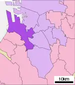 Nishi-ku (西区) is a ward of the city of Sakai in Osaka Prefecture, Japan. The ward has an area of 28.62 km2 (11.05 sq mi) and a population of 133,583. The population density is 4,667 per square kilometer.[1] The name means "West Ward."