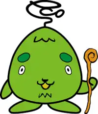 Nishi's mascot is Yamabe Sankaku (さんかく やまベェ) is a mountain yōkai. He was discovered in Kamisunagawa in 1959. He is said to inhabit Mount Sankakuyama and Kotonihassamu River. It is believed that he is 1.5 million years old. He loves to eat mountain apples and komatsuna spinaches from the river. As he is a lover of nature, he is saving the world from global warming. He is designed by Yuji Motoaki and became mascot in 2007.[1] He is not the only yōkai of his type, there are three others.