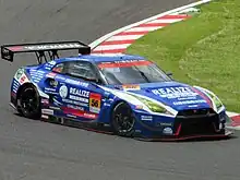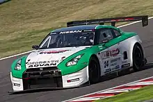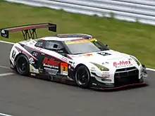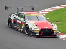 The GT-R Nismo GT3 made its Super GT debut in 2012 at the Okayama International Circuit, with drivers Katsumasa Chiyo and Yuhi Sekiguchi. The car won its first race in the fourth round of the season at Sportsland Sugo, and also scored a podium finish in the following round at Suzuka. It was 4th in the final standings.[26] A couple of difficult seasons followed, in 2013 the car failed to score a single podium finish, in 2014 it only managed to win a race.[27][28] But in the 2013 JAF Grand Prix, team NDDP Racing, with driver Daiki Sasaki won the first race, starting from pole position. In the second race, the car only managed to finish 7th, and ended up being the runner-up of the 2013 JAF Grand Prix. It set the fastest laps in both races, as Nismo Athlete Global Team and NDDP Racing set the fastest laps of the first and second races respectively.[29] The car bounced back in the 2015 season, team Gainer No.10 car, driven by André Couto won the championship, scoring 2 race wins and 4 podium finishes. Including the results of team NDDP Racing, the car finished the season with a total of 4 race wins and 7 podium finishes.[30]
