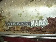 NAPS stands for Nissan Anti Pollution System[1] a moniker used in Japan to identify vehicles built with emission control technology. The technology was installed so that their vehicles would be in compliance with Japanese Government emission regulations passed in 1968. The term was first introduced in Japan, with an externally mounted badge on the trunk of vehicles equipped. Nissan's implementation began with the Y44E V8 engine installed in the Nissan President along with all vehicles installed with the Nissan L engine and the Nissan A engine in 1975. The initial introduction of Nissan's technology was the installation of an exhaust gas recirculation valve, followed with the addition of a catalytic converter and an air pump that added oxygen into the exhaust to promote higher temperatures in the catalytic converter, thus cleaning the exhaust further.